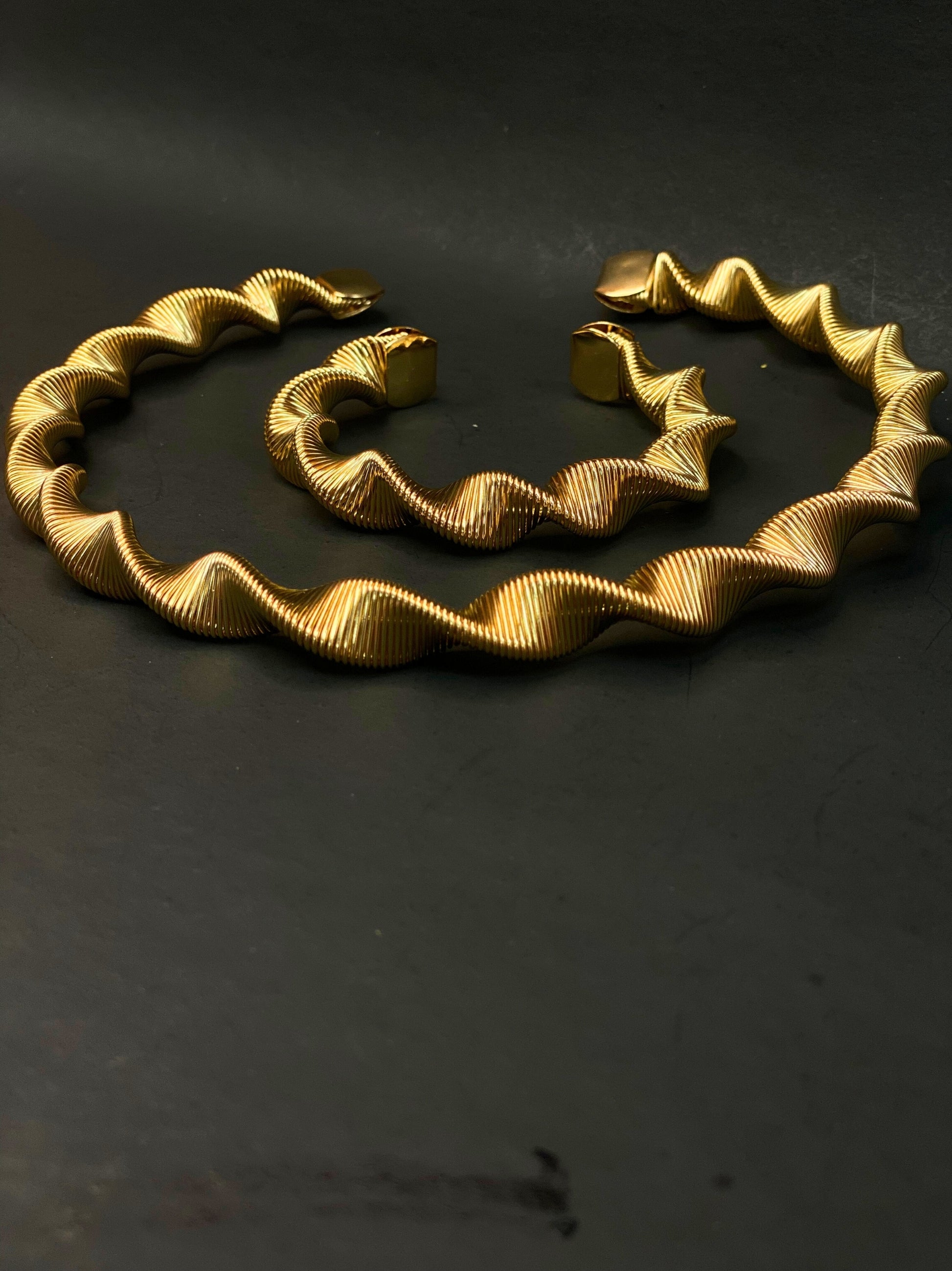 Golden Wave Design Necklace Set with Matching Hoop Bracelet