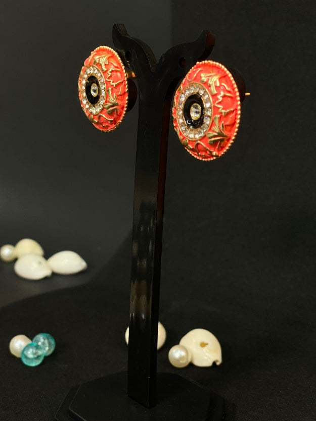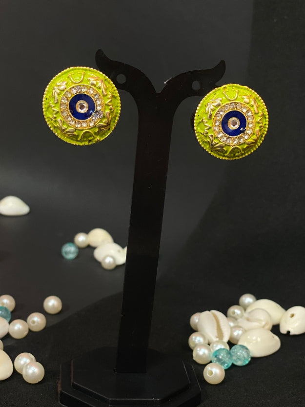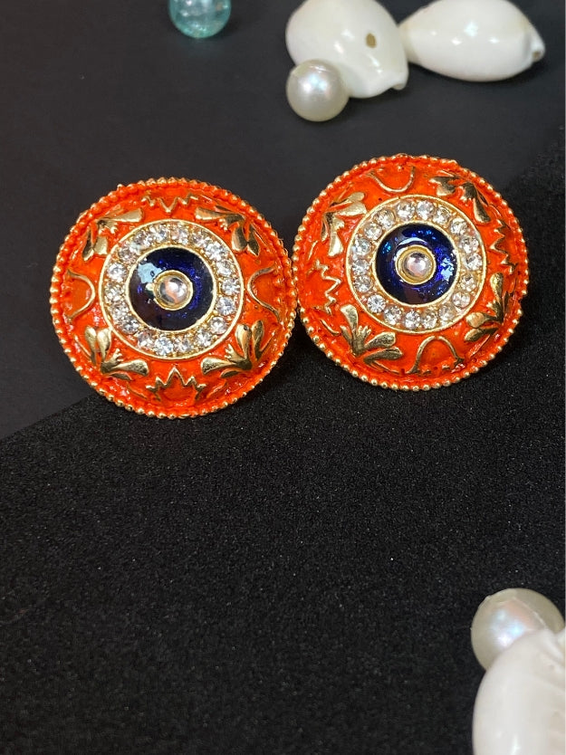 Meenakari Round Stud Earrings with Imitation Stone