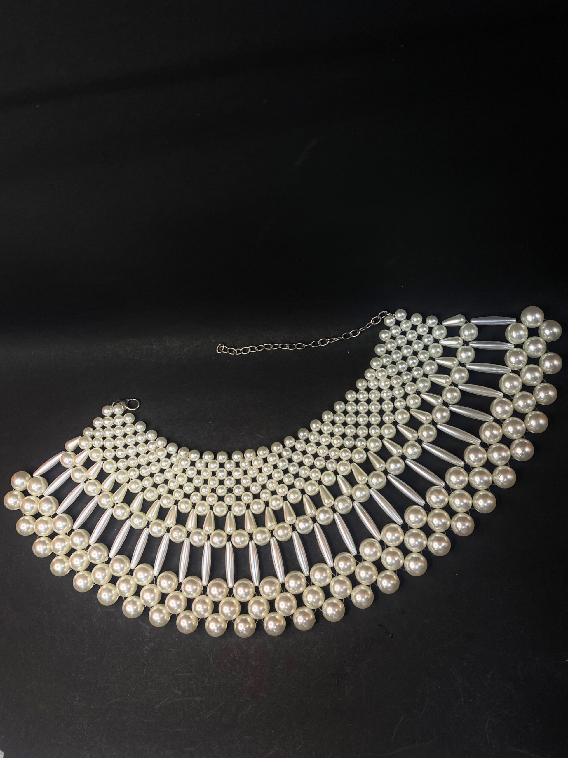 White Pearl Choker Necklace | Statement Pearl Necklace with Adjustable Chain
